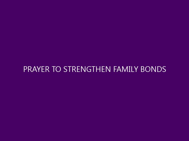 Prayer to Strengthen Family Bonds: Cultivating Love and Unity In today’s fast-paced world, where the pressures of life often pull us in different directions, nurturing
