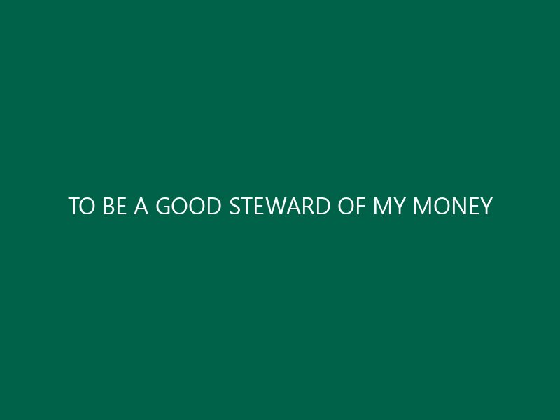 TO BE A GOOD STEWARD OF MY MONEY