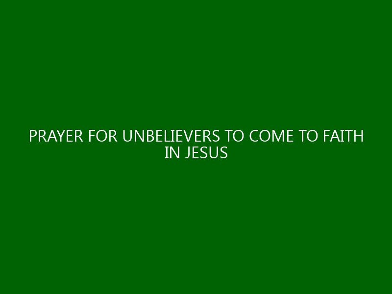 Prayer for Unbelievers to Come to Faith in Jesus Introduction In a world brimming with doubt and uncertainty, the significance of prayer looms large for