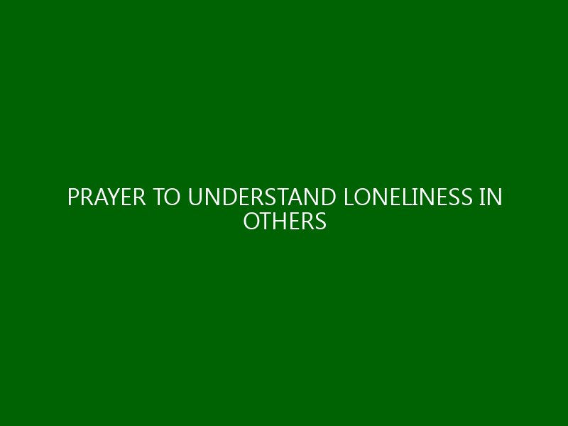 Prayer to Understand Loneliness in Others Introduction Loneliness is often viewed as a deeply personal experience, a feeling that isolates us from the world around