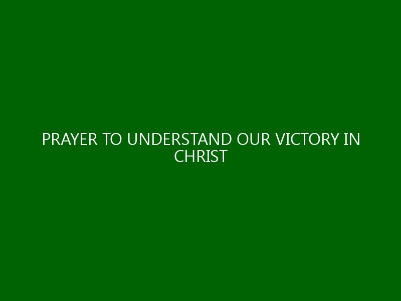 Prayer to Understand Our Victory in Christ Introduction In a world filled with challenges and uncertainties, the idea of victory can sometimes seem elusive. For