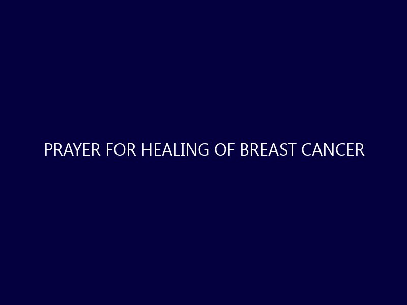 Prayer for Healing of Breast Cancer Breast cancer is a diagnosis that affects not only the individual but also their loved ones. In times of
