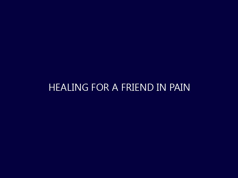 Healing for a Friend in Pain When a friend is suffering, it can be one of the hardest experiences in life. We often feel helpless,