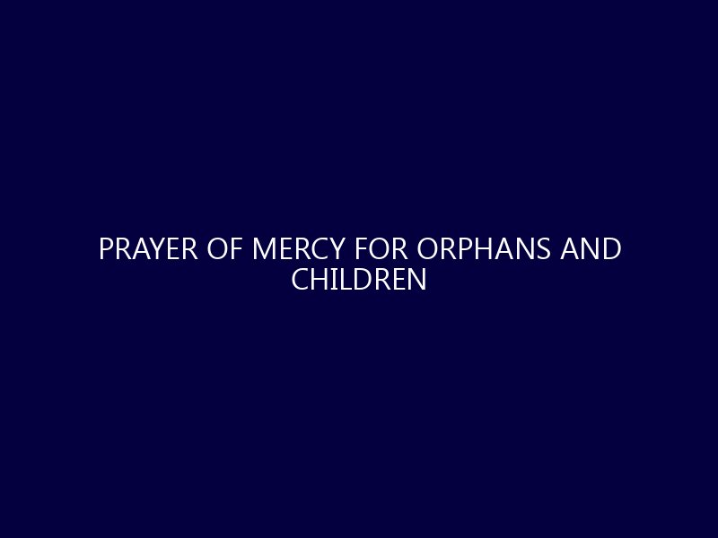 Prayer of Mercy for Orphans and Children In a world that often feels overwhelming, the plight of orphans and vulnerable children often touches our hearts