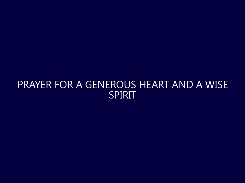 Prayer for a Generous Heart and a Wise Spirit